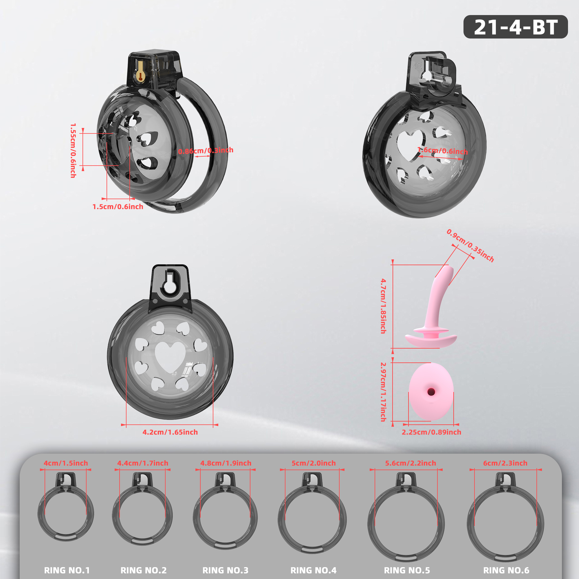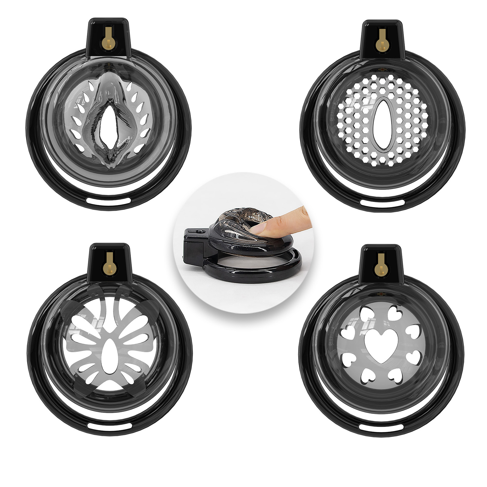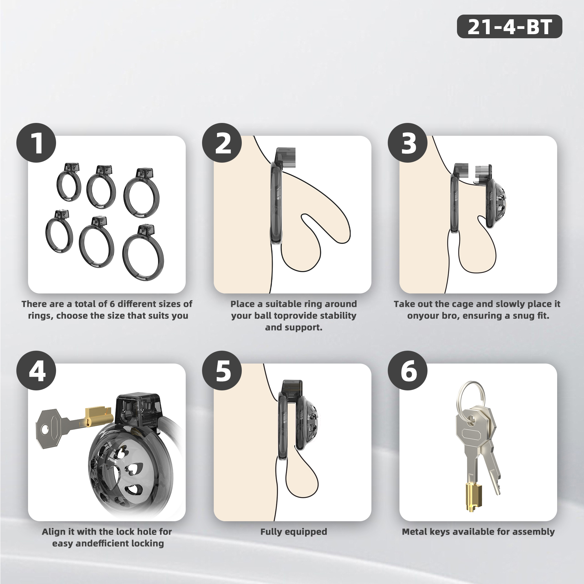 选购这款黑色柔软硅胶男士贞操笼,配有6个可调节阴茎环。佩戴安全舒适,适合长时间佩戴。