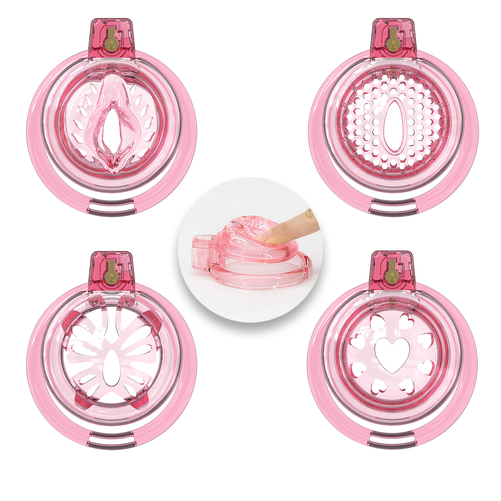 Explore the Soft Silicone Chastity Cage for Men in red. Designed for comfort with 6 adjustable rings. Get it now at Rupipichastity for a secure fit!