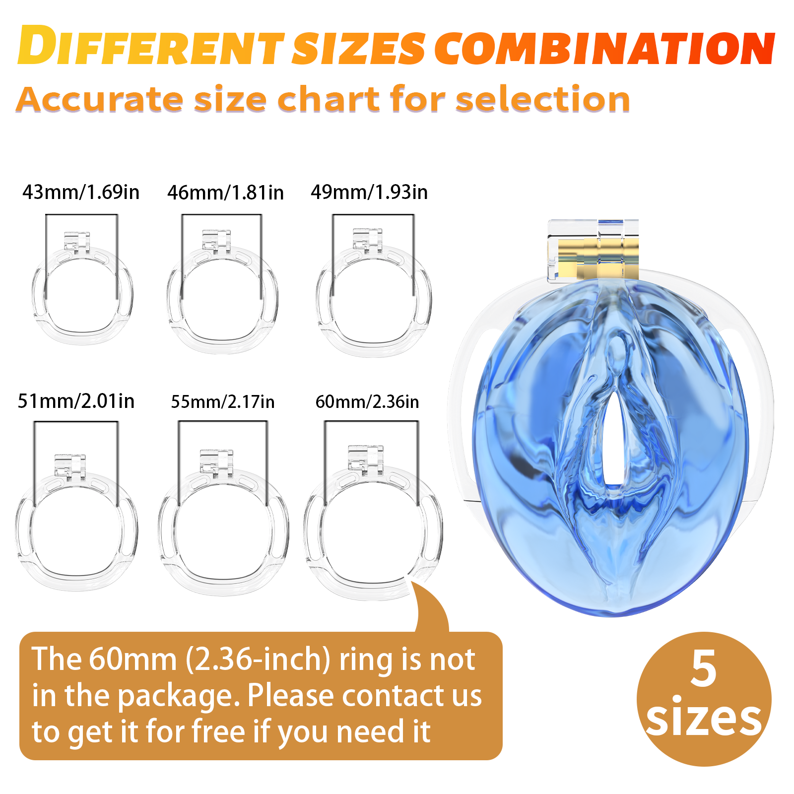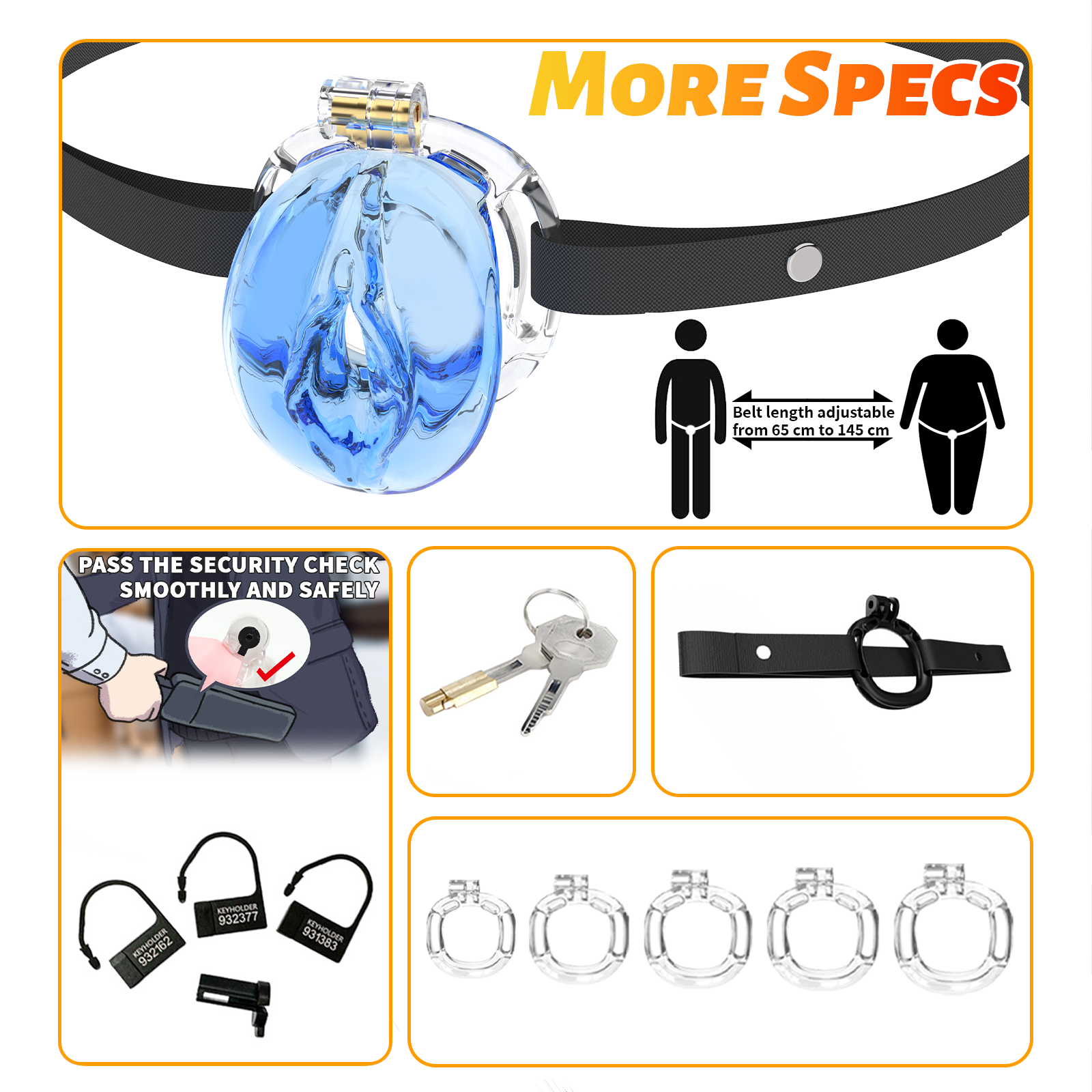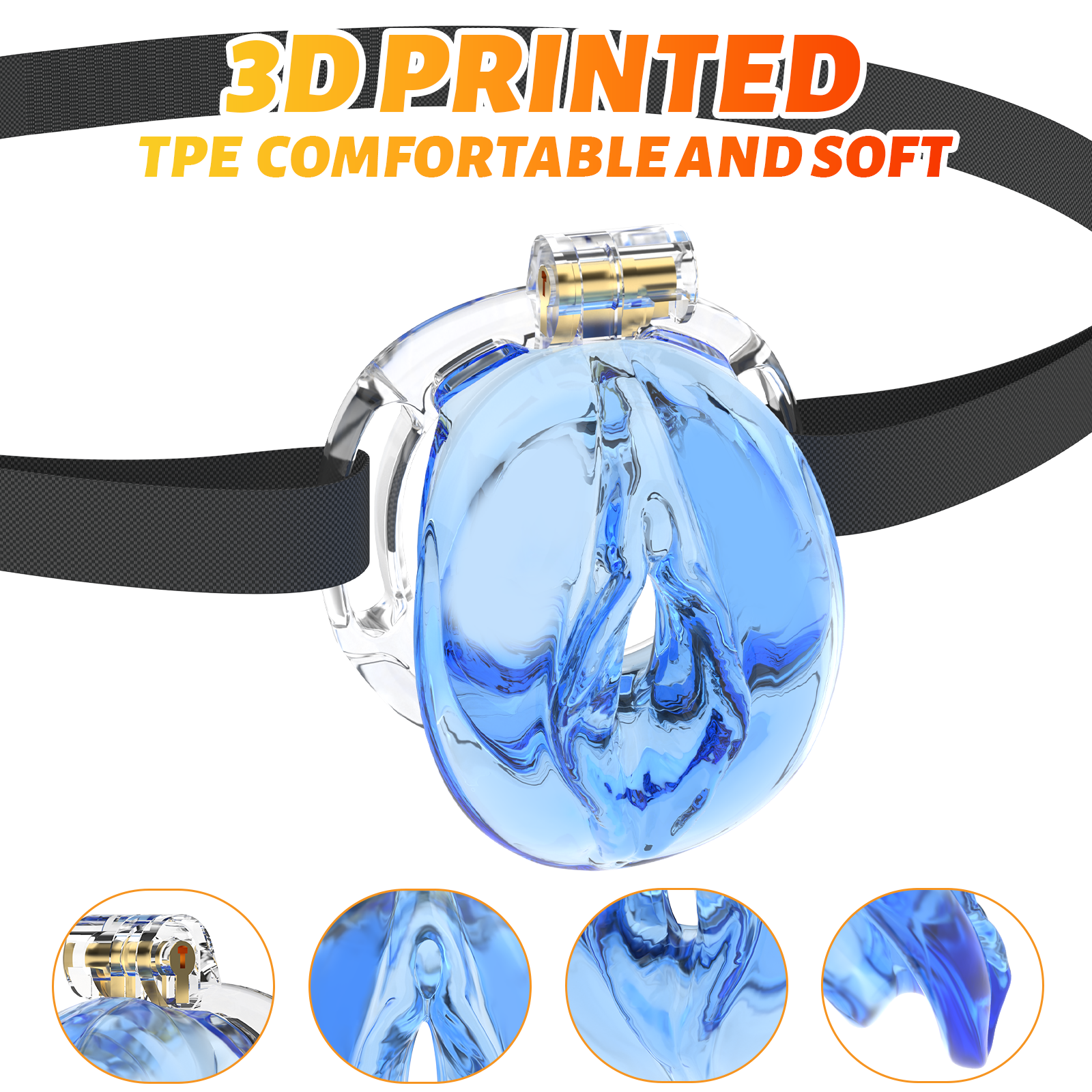 Male Chastity Cage 3D Printed Sissy Cage Cock Cage with Soft TPE Bondage Gear & Accessories Adult Sex Toys Slave Tool Chastity Devices (Blue transparent)