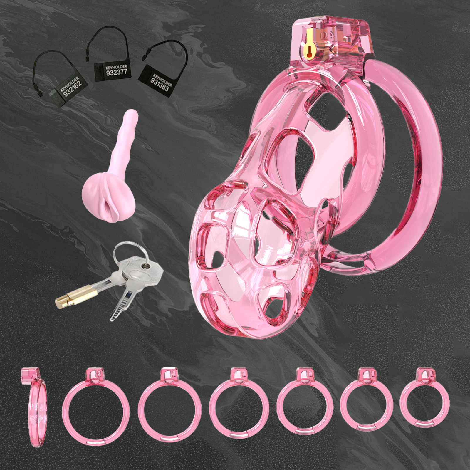 Male Chastity Cage – Lightweight Chastity Cage for Men with 6 Sizes Rings Chastity Device Adult Sex Toy for Man – Cock Cage(Pink)