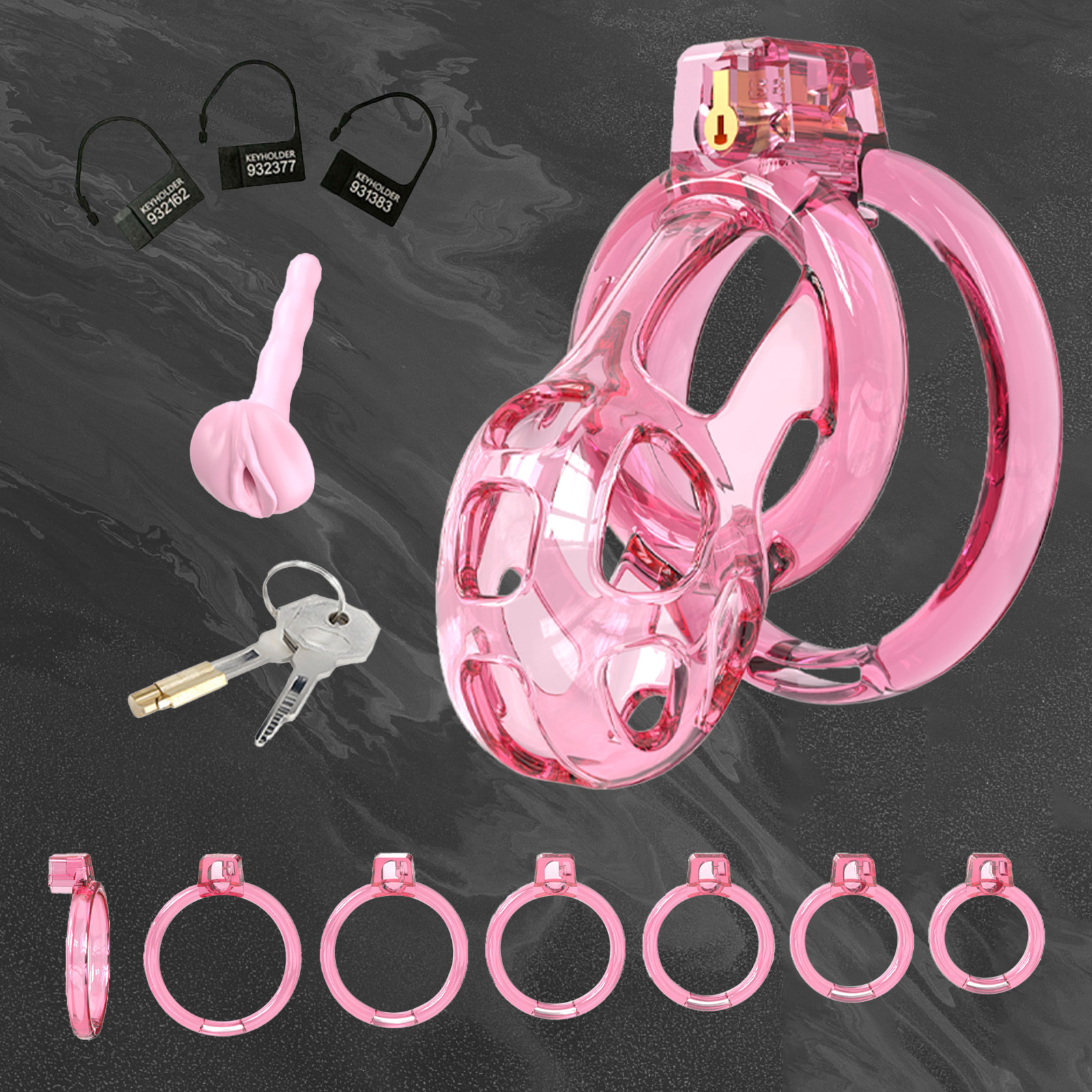 Male Chastity Cage – Lightweight Chastity Cage for Men with 6 Sizes Rings Chastity Device Adult Sex Toy for Man – Cock Cage(Pink)