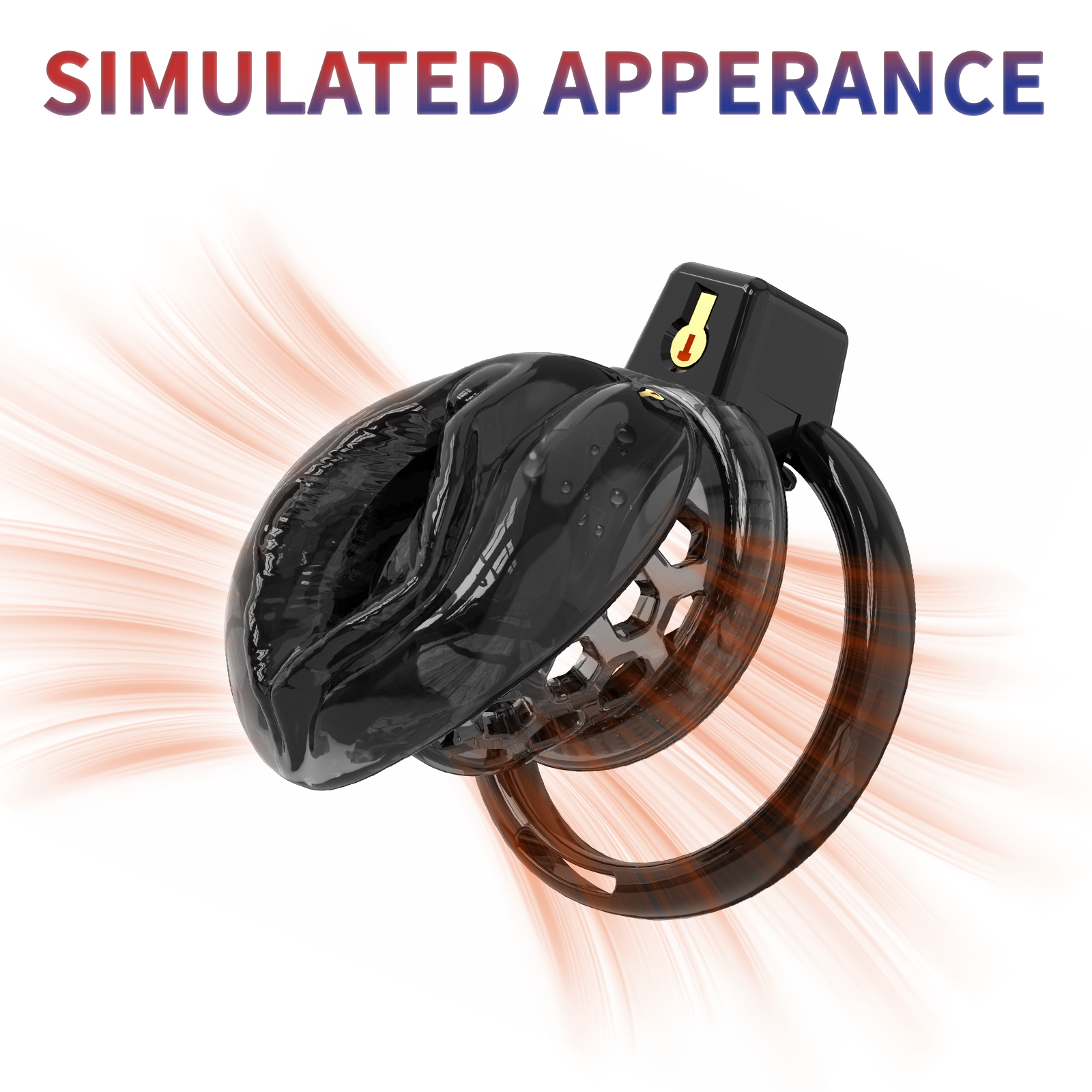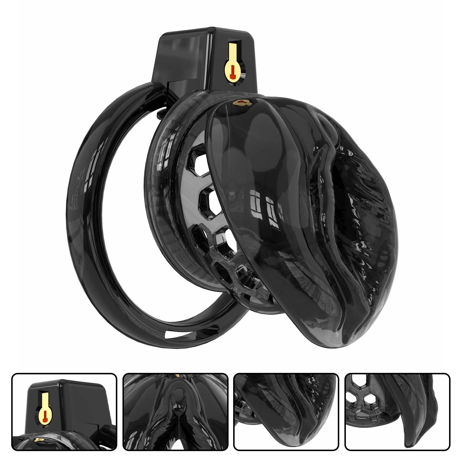 这款黑色男性贞操笼采用柔软的TPE材质,带有逼真的阴唇和透气的中空设计,让您体验极致的控制感。