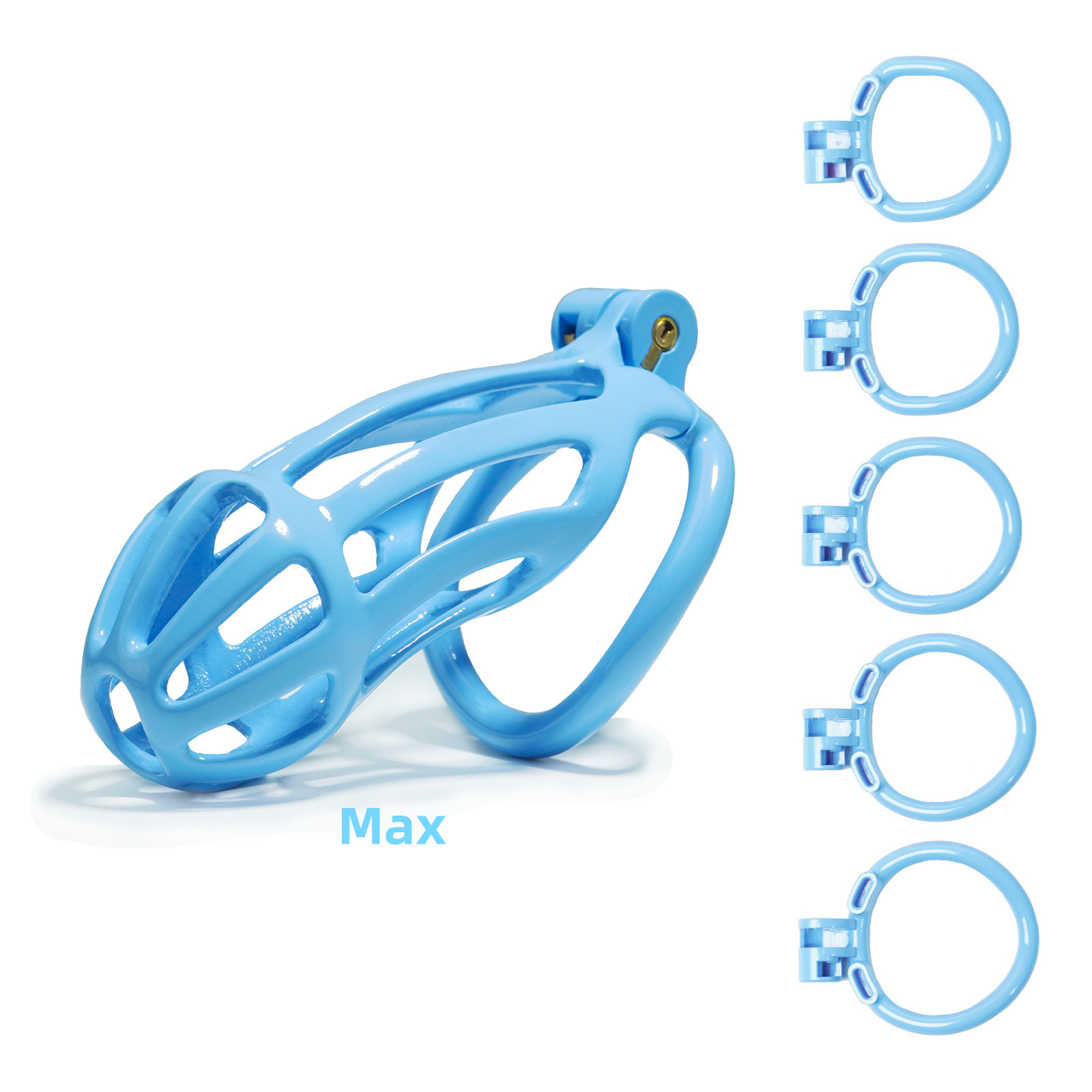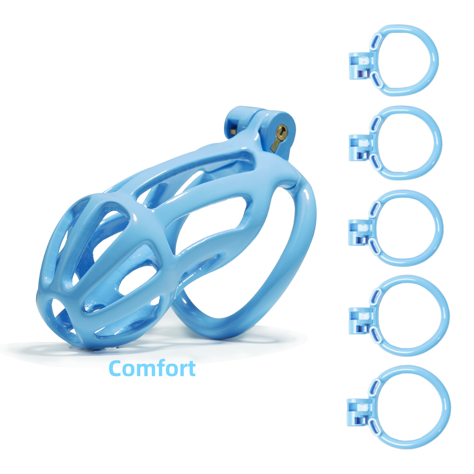 Most Secure & Comfortable Chastity Cage – 3D-Printed Lightweight with 5 Rings & Hidden Lock ( Blue)